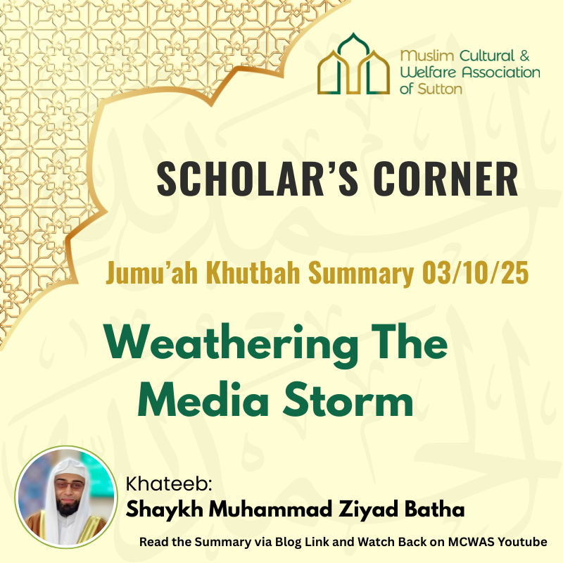 Muhammad Ziyad Batha 03/10/2025 Muhammad Ziyad Batha 03/10/2025 Weathering the Media Storm: Community Advice (Jumu’ah Summary 03/10/25) Khutbah Summary 26/9/25 Read More