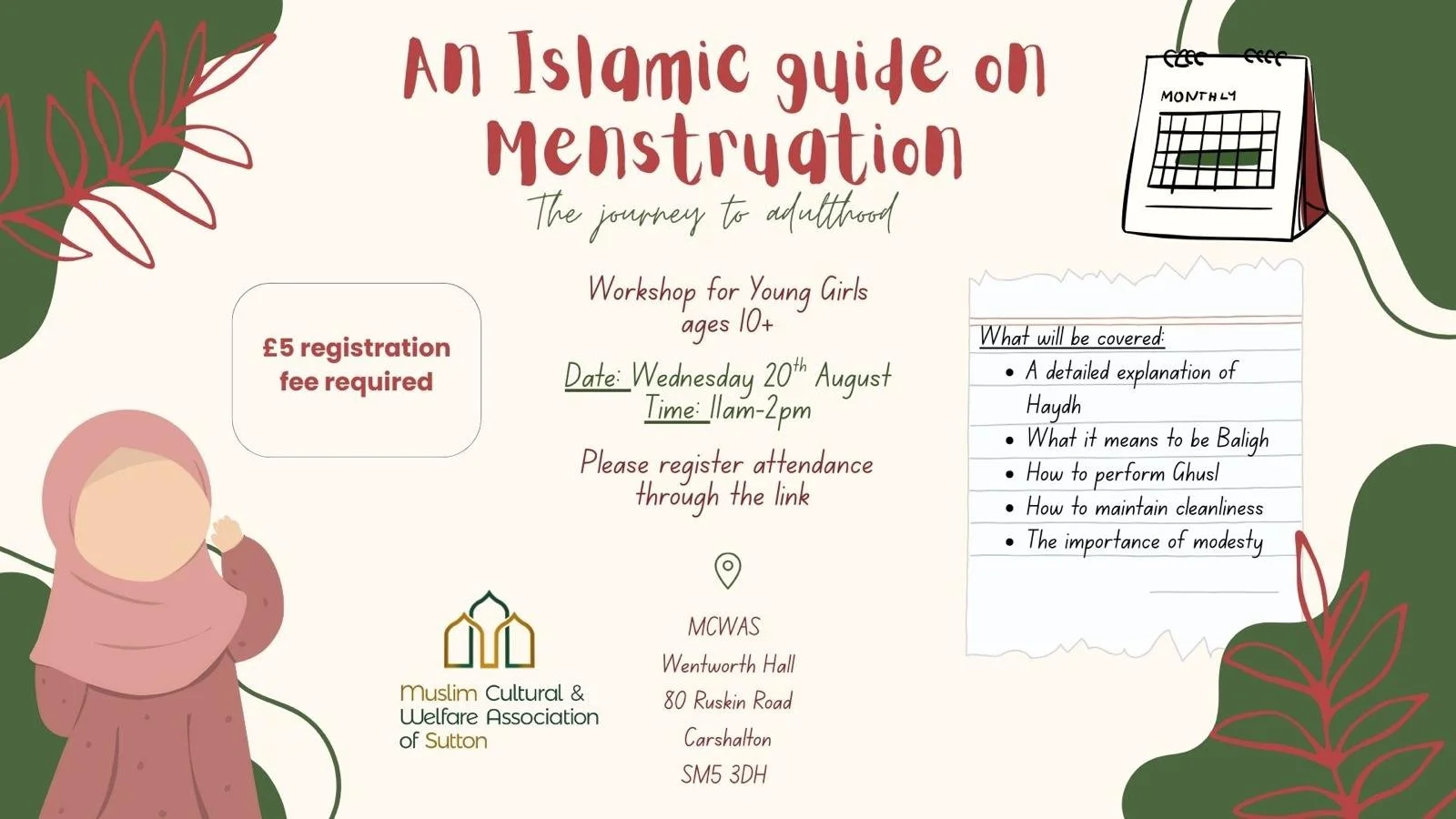 Join us on Wednesday for an informative workshop where girls will learn everything they need for their journey into adulthood.
