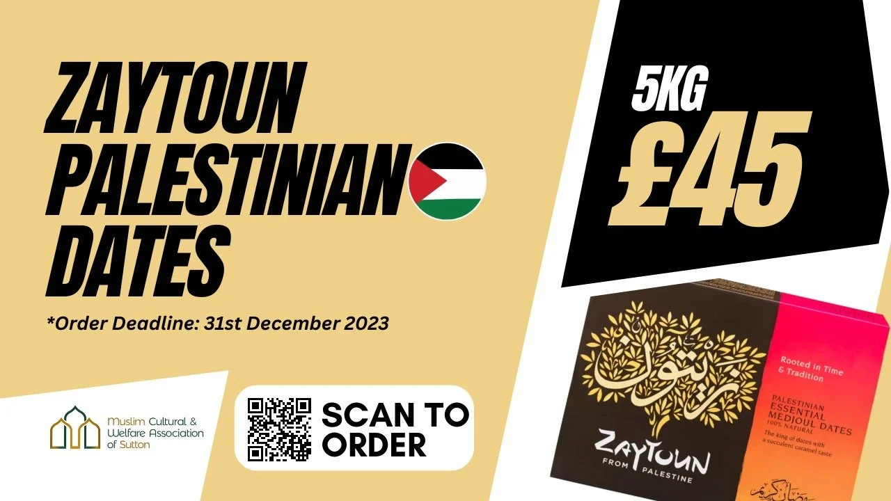Insha’Allah, we will be procuring Palestinian 🇵🇸 dates in time for Ramadan. Order your boxes now and collect closer to Ramadan. Due to the current crisis, the price has increased to *£45* for a *5kg* box.